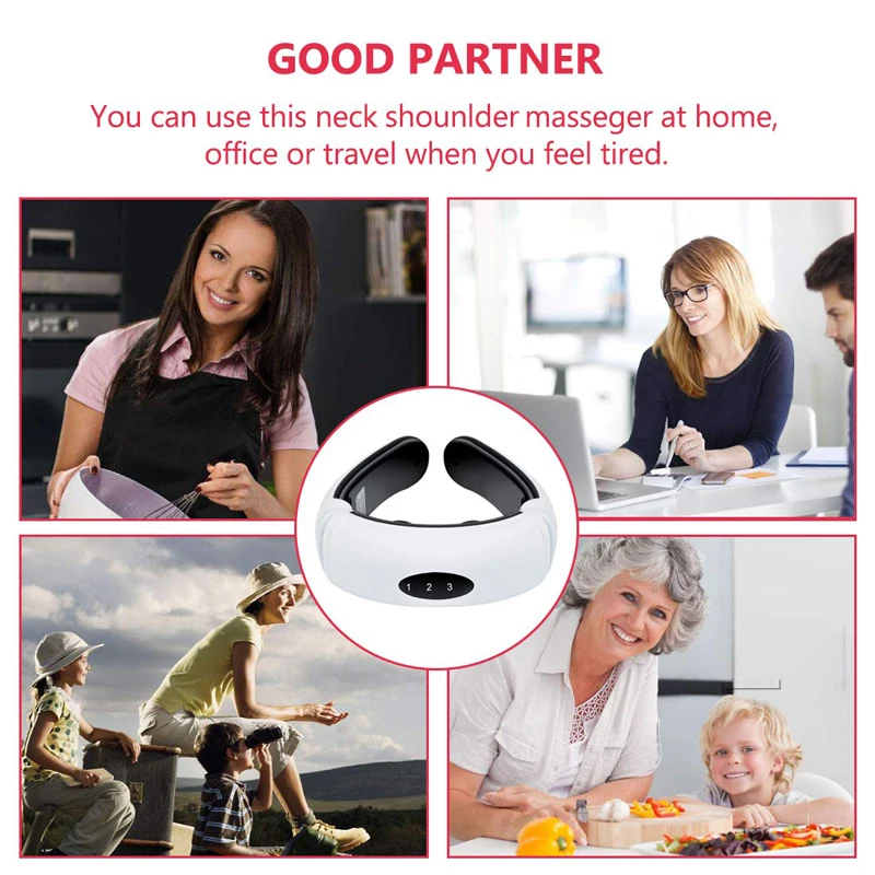 Electric Pulse Back and Neck Massager Far Infrared Heating Pain Relief Health Care Relaxation Tool Intelligent Cervical Massager