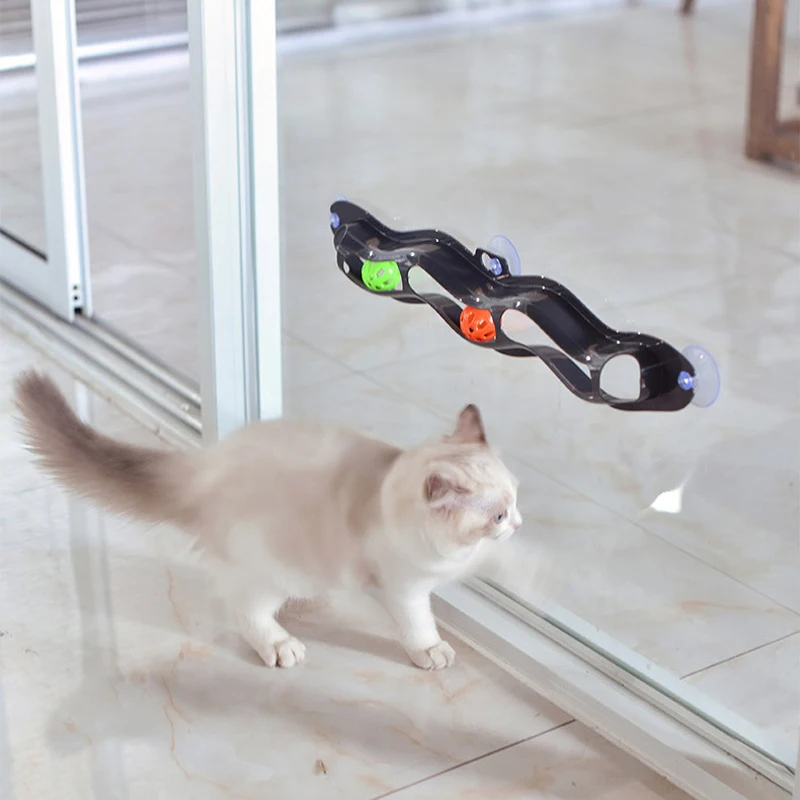 Pet Cat Funny Interactive Toys Track Ball Window Suction Cup Ball