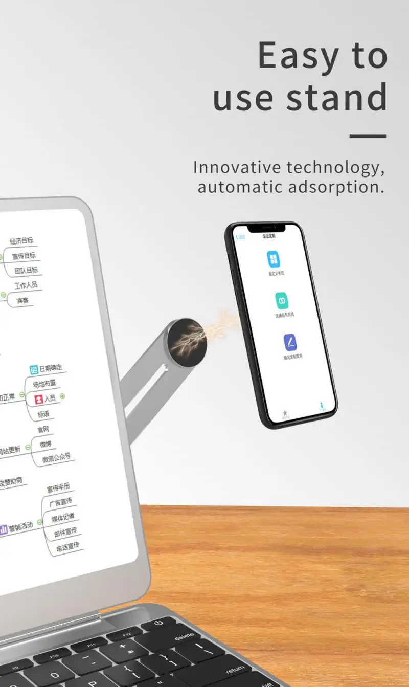 This Magnetic Side-Mount Clip can clamp tablet or cell phone to laptop to get multi-display computing experience, extend your screen, increase your productivity and multitasking at home , office or on the way.