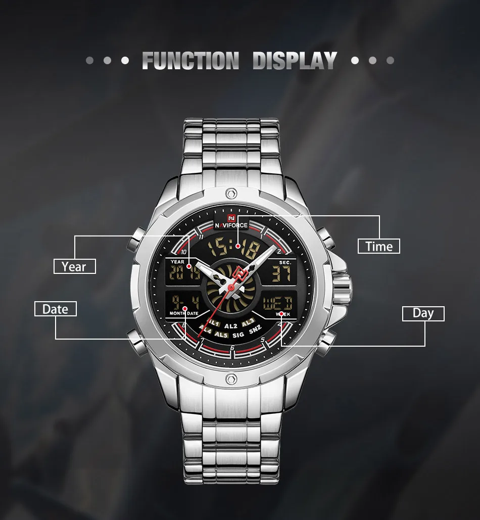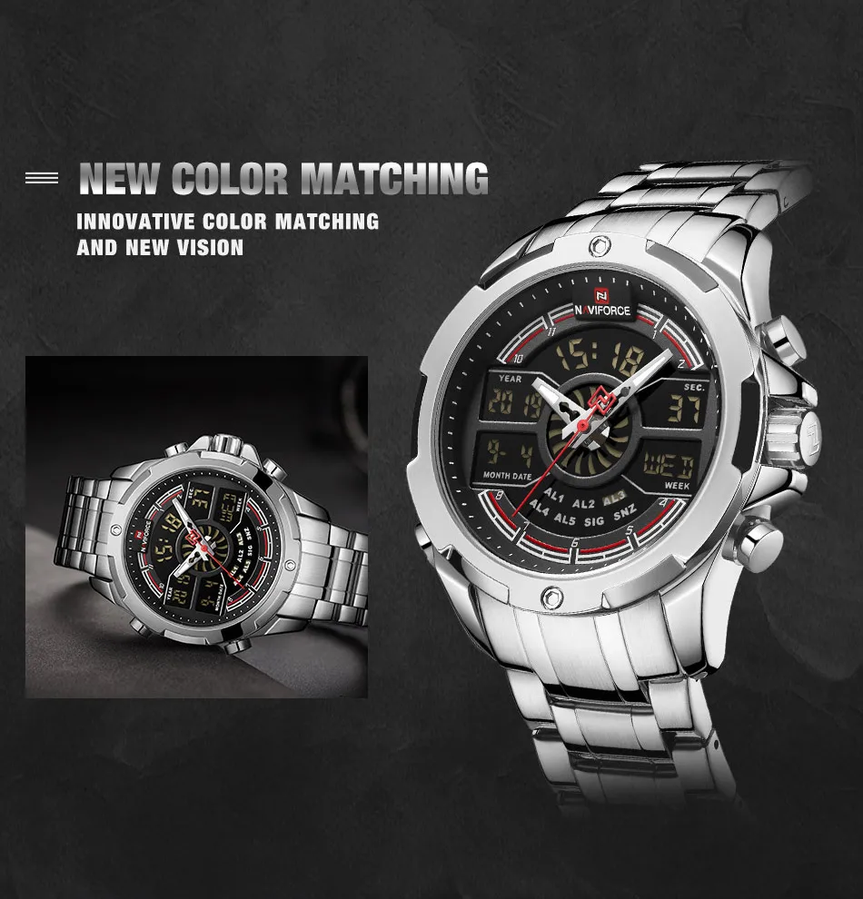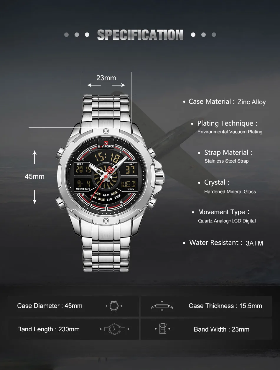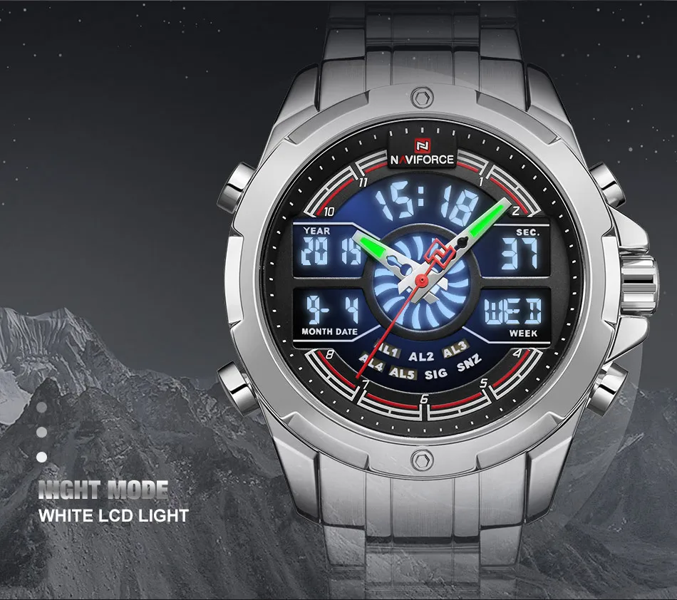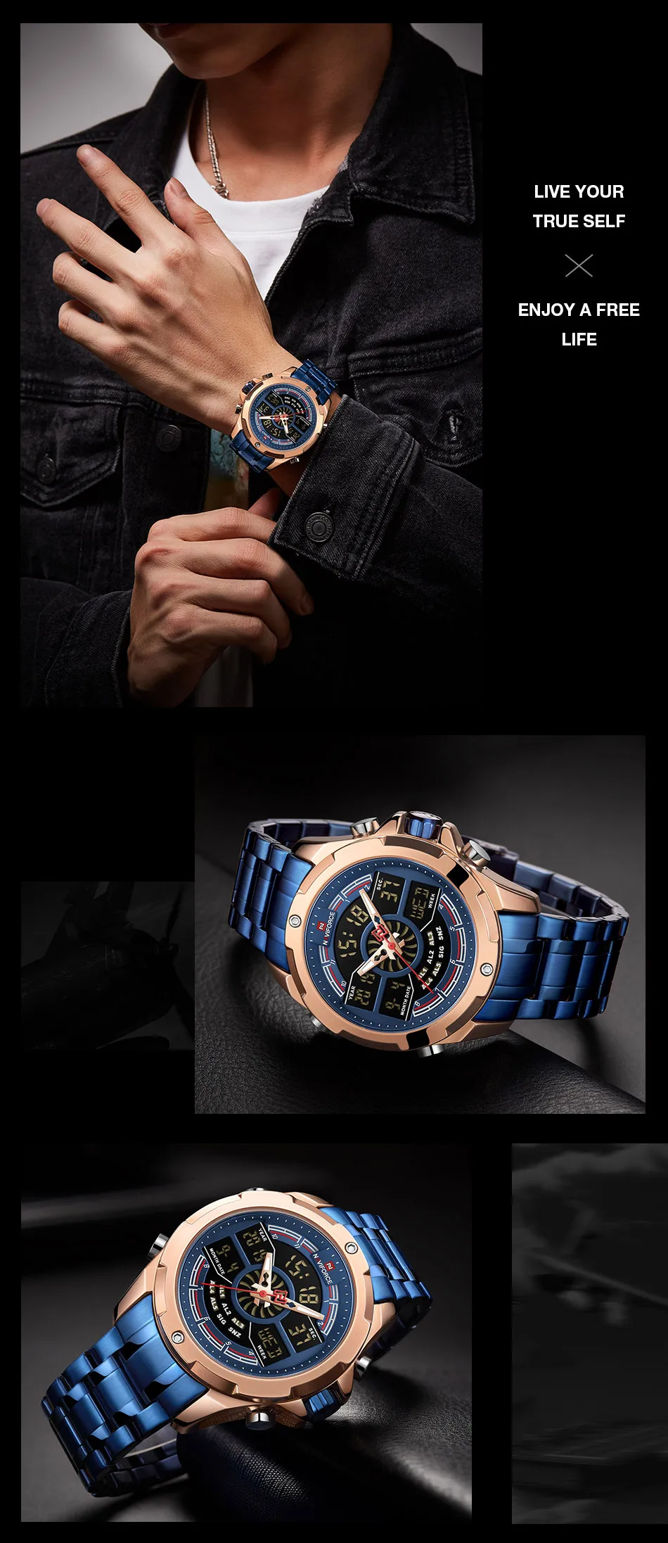 NAVIFORCE Watch Men Top Brand Luxury Stainless Steel Quartz Men’s Watches Blue Waterproof Sports Big Wrist Watch Male Clock