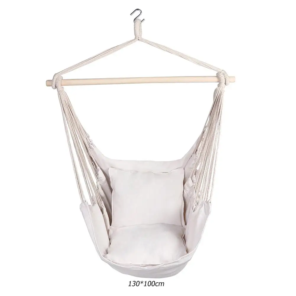 Portable Hammock Chair Hanging Rope Chair Swing Chair Seat with 2 Pillows for Garden Indoor Outdoor Safety Hammock Swings