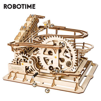 Robotime DIY Marble Run Game 3D Wooden Puzzle Gear Drive Waterwheel Coaster Model Building Kit Toys for Children Adult LG501