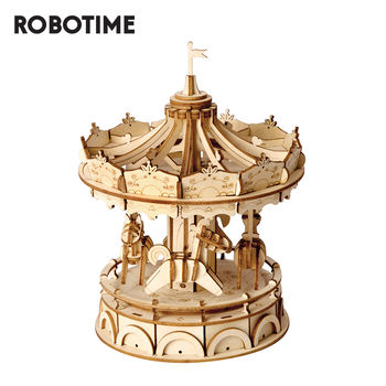 Robotime DIY Merry Go Round Toys 3D Wooden Puzzle Toy Assembly Model Wood Craft Kits Desk Decoration for Children Kids TG404