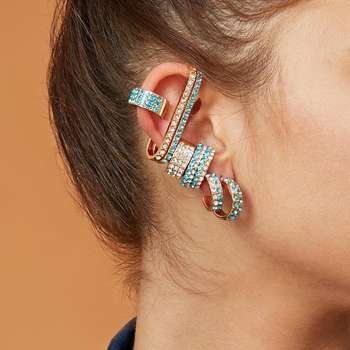 IngeSight.Z 8Pcs Luxury Shiny Blue Color, Rhinestone Stud Earrings Set Punk Geometric Crystal Earrings for Women Jewelry Brinco