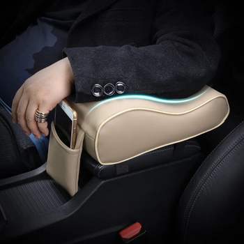 Car Seat Armrest Cushion Pad Armrest Pad Cover Center Console Memory Foam PU Leather With Smart Phone Holder Bag Car Styling