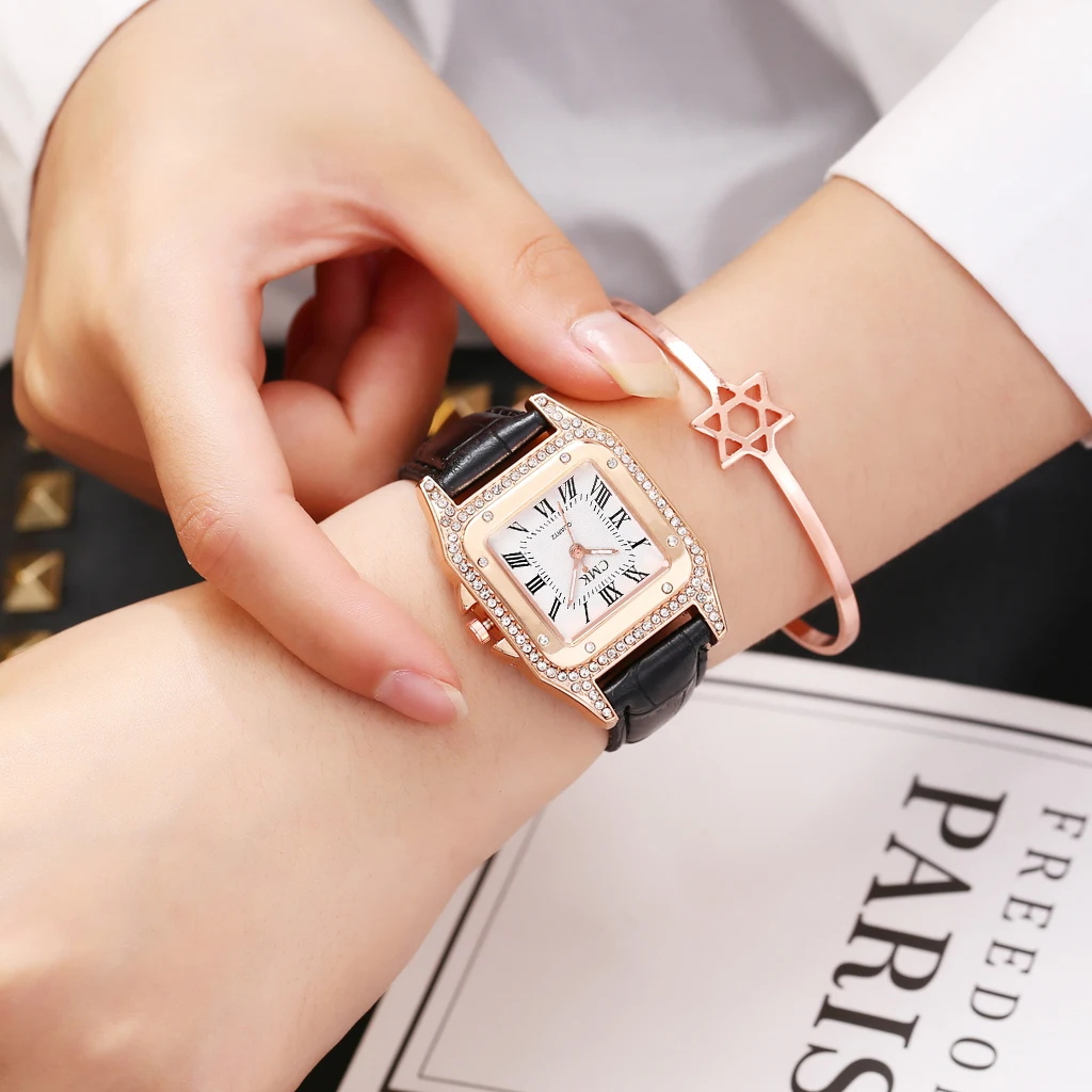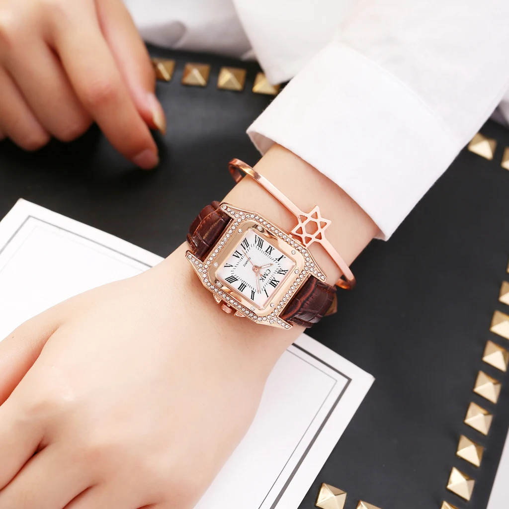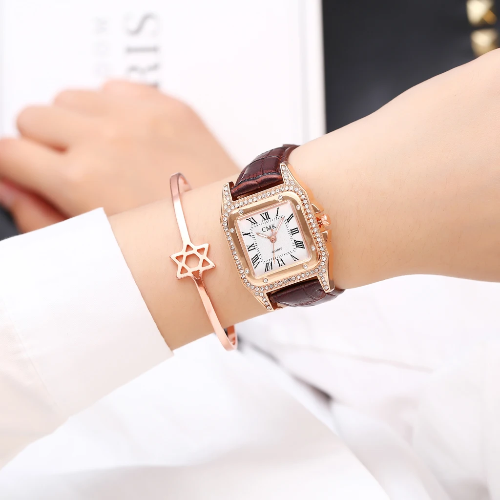 Classic Luxury Fashion Women Rhinestone Watch Leather Analog Quartz Watches Ladies Dress Watch Relogio Feminino Dropshipping