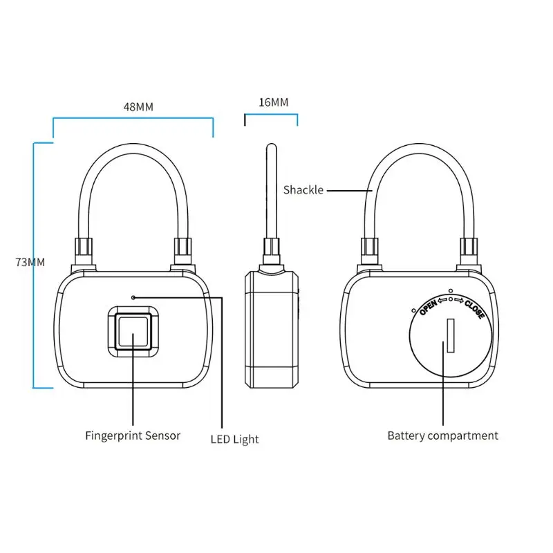 Fingerprint unlock, short press unlock, long press for 3S to set fingerprint, long press for 6S to delete fingerprint.