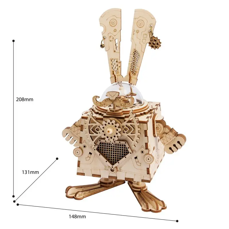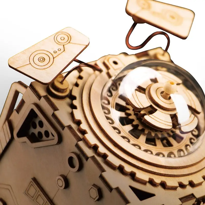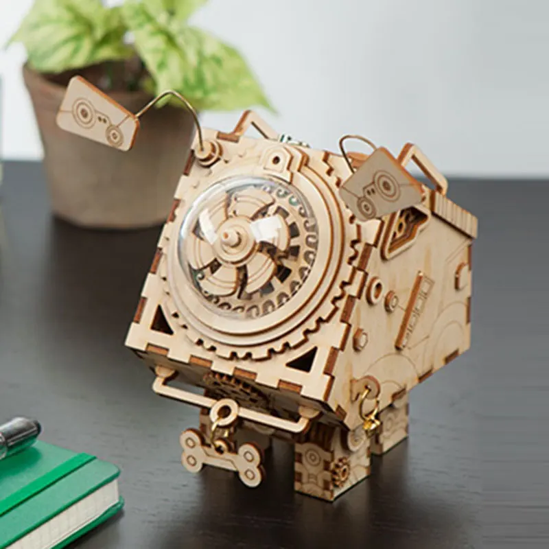 Laser Cutting Tech and DIY robotic Music Box Kit】With laser cutting edge technologies, integration of Steampunk components, a first-hand crank music box seemed. This can be a DIY wooden mystery that will show the look of a cute robot toy at the end of the assembly. Behind it, you will find concealed buttons and battery boxes to Enhance the overall beauty of the product.