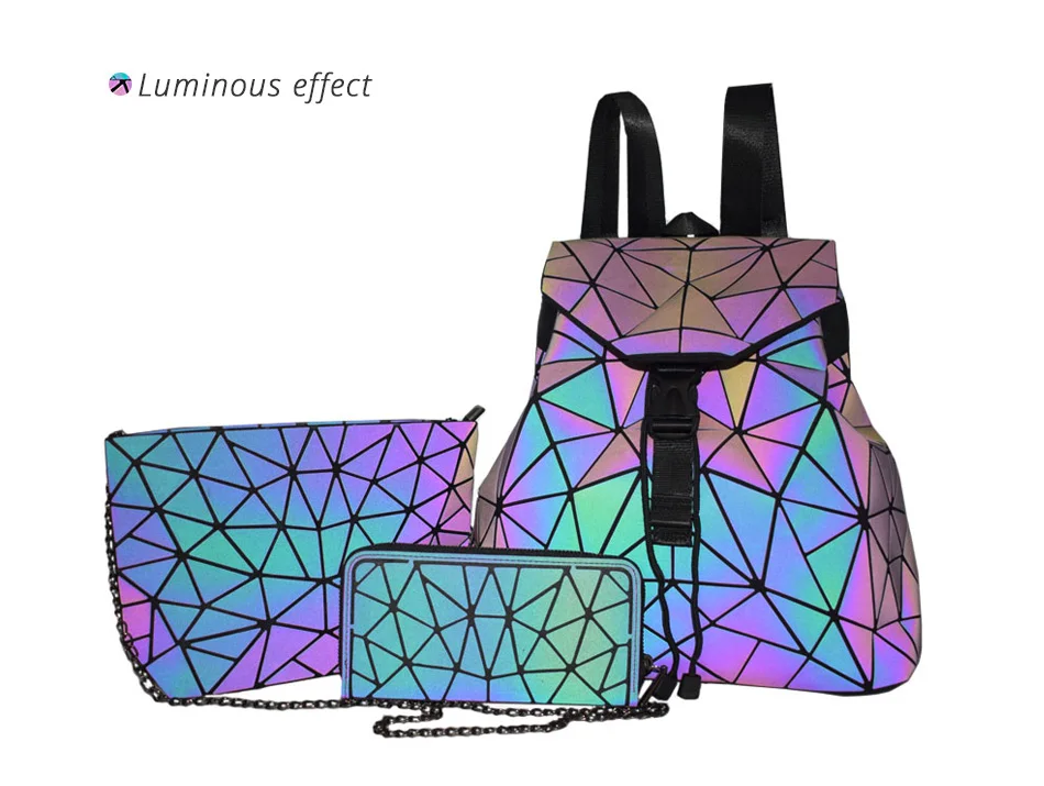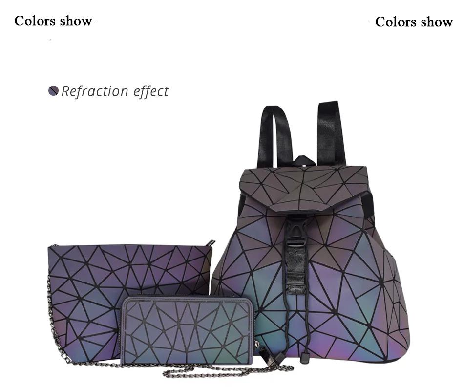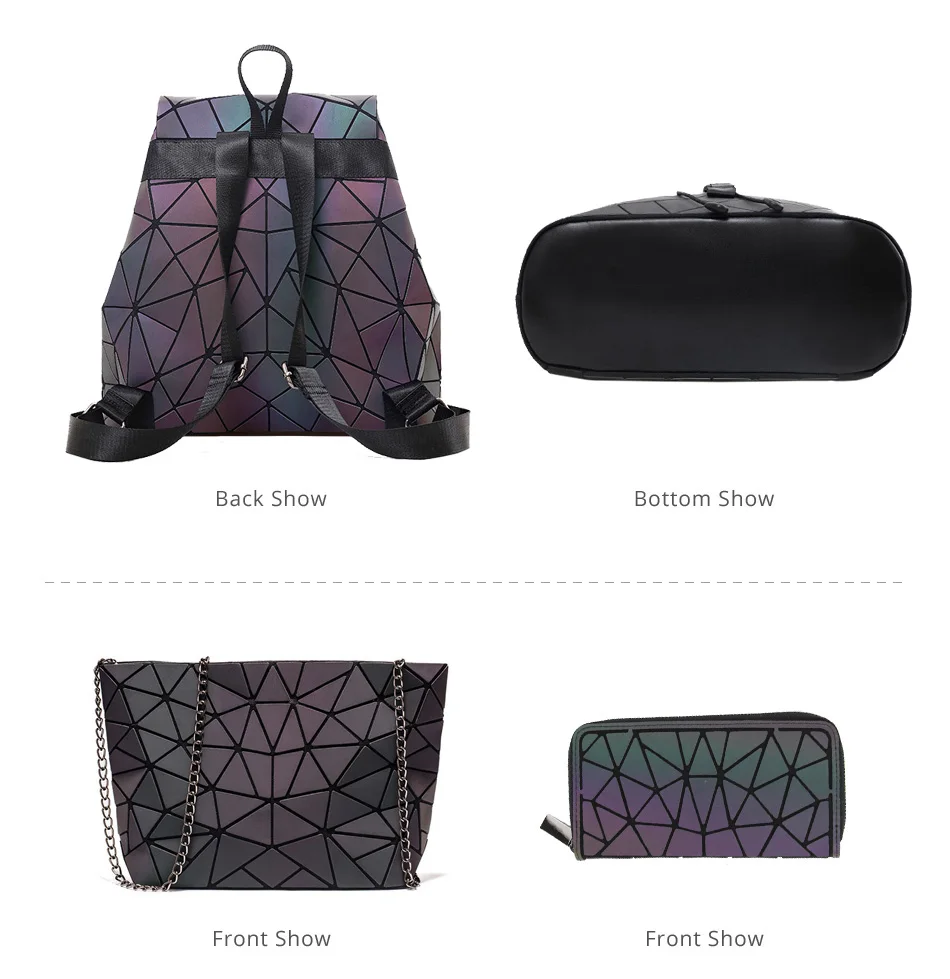 Women Geometric Shoulder Bags 3 Pcs Set Backpack